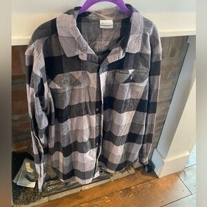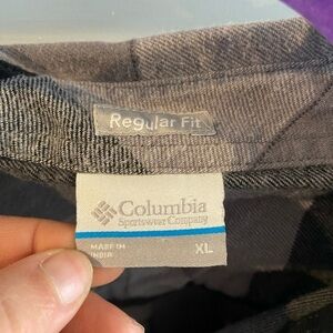 Mens Columbia Regular Fit XL Black and Gray Plaid Button Down Shirt