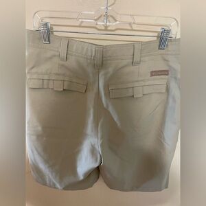 Men’s Columbia shorts size 32 with 8 inseem. Snap button. Back pockets Velcro. Khaki in color. No flaws good condition