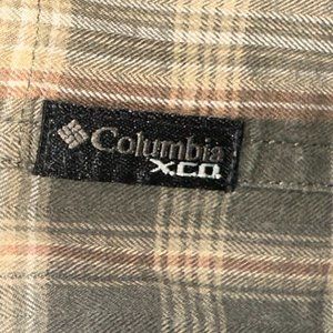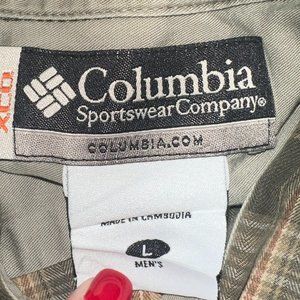 Men's Columbia XCO Brown/Cream/Green Plaid Button Down Flannel Shirt Size Large