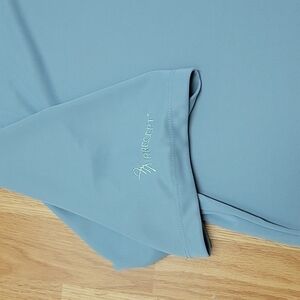 embroidered right sleeve is "precept" in the same color as the shirt. hardly noticeable (see photo above)