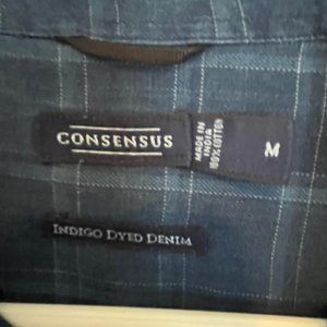 Men's Consensus button down shirt. Size M. Navy Blue. has one front pocket. very soft material. Excellent condition.