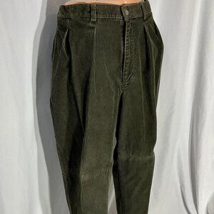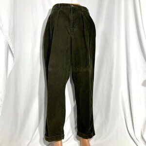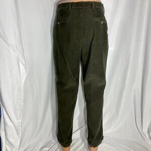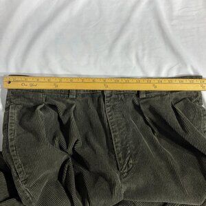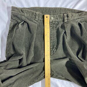 Really nice peat moss color pants. There is no brand listed, just "Tailored in Hong Kong". These are pre-owned pants in ok condition. They had been sitting on a hanger for years so there is a bit of flattening of the corduroy (see last two pics and 1st pic). Washing may reduce the amount of flattening.