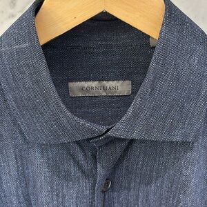 Men's Corneliani Stretch TRAVELTECH Button-Front Dress Shirt 16/41 indigo