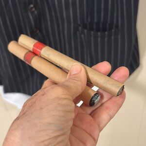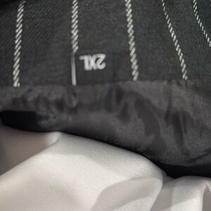 Halloween Costume, Men's, Size XL, Zoot Suit with Accessories. This is a very fun AND comfortable costume! Use your own comfortable pants. This costume includes a white short sleeved shirt, pin striped vest, bow tie, pocket watch on a chain (to swing), and two fake cigars. The White Shirt is collared, and size XL, with 7 button front, front button pocket, 100% polyester, machine wash. The pin striped vest has 3 front pockets, is sized 2XL, fully lined, navy blue with white pin stripes, back adjustable belt (see pictures). There is a real pocket watch with enough weight to twirl properly on a 28" chain an embossed cover that clicks open, antique brass. The adjustable bow tie is black and white and quite striking. The fake cigars are 6" long each. Great condition. No wear marks.