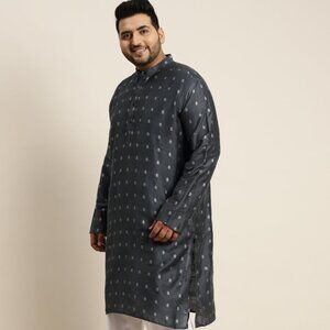 Men's Cotton Blend Grey Kurta Long Sleeve Size Medium 38