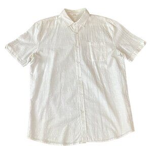 Mens Cotton Flax Blend Sz L SS Casual Button Front Shirt 277S