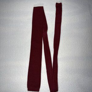 Mens Cotton Maroon Knub Woven Square Tip Neck Tie 56" x 2.5" Vintage