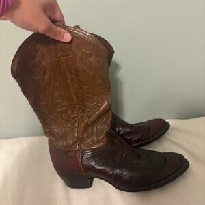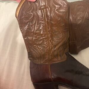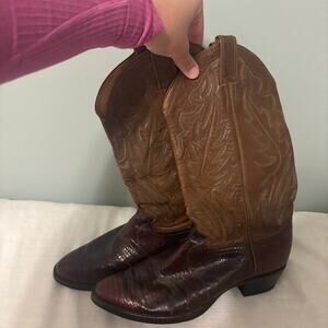 Men's Cowboy Boots Brown Lizard Leather Pointed Toe Western Size: 8.5