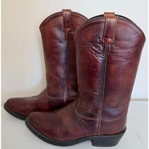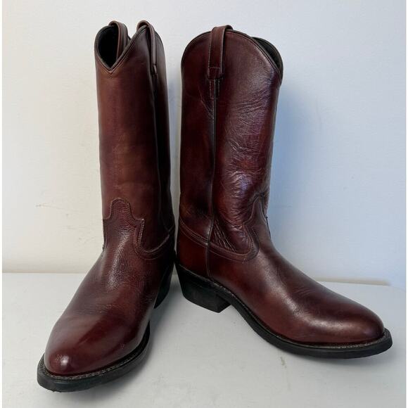 Men’s Cowboy Boots Leather Size 11EE Dark Brown Red Side Loops Low Heel