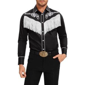Easy to Match: This mens fringe cowboy shirt long sleeve easily fit into tucked in bootcut jeans, flared trousers,chinos or casual pants for a unique daily casual style. Pair it with denim hats to create a fashionable and handsome Western style.