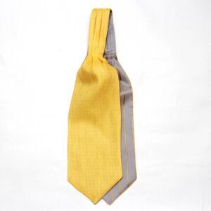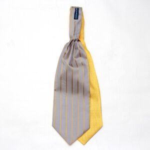 Mens Cravat Ascot 100%Silk Reversible Yellow Grey A166 Gift Box