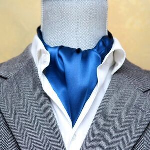 Men's Cravat Ascot 100%silk Gift Box Blue Navy Solid A209