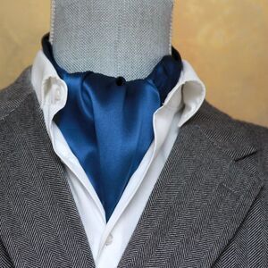 Men's Cravat Ascot 100%silk Gift Box Blue Navy Solid A209