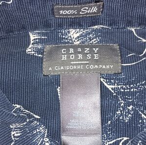 Crazy Horse by a Clairbone Company.Elegant blue silk shirt with white floral design. Ideal for casual wear.