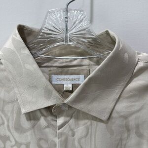Men’s Cream Casual Button Down Shirt with Textured Fabric