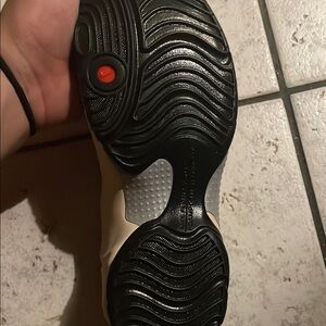Step up your style with these sleek cream and black athletic shoes. Perfect for any casual outing or workout session.