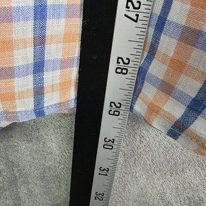 Mens Cremeux Classics Blue White & Orange Checkered Shirt 100% Linen Size M