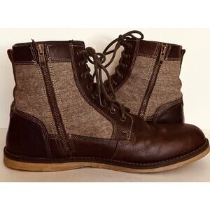 Mens Crevo Trilby Sz 11 Chestnut Lace Up Herringbone Fabric Insets side zip Lthr Chukka Boot. Distressed leather lace-up boot