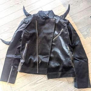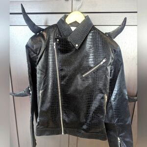 Men's Crocodile Pattern Vegan Leather Jacket with Magnetic Horns -NWT size S