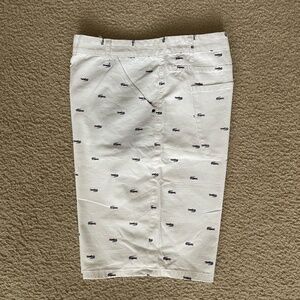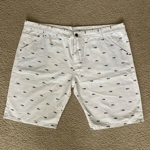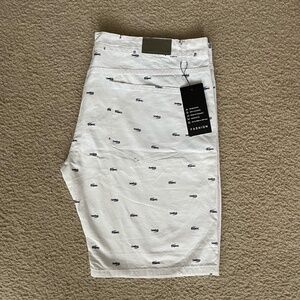 Men's Crocodile Print 5-Pocket Cotton 'Fashion Jeans' Shorts-White-Size 44