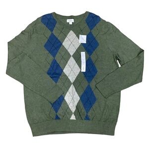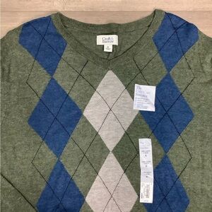 Men’s Croft & Barrow XL 46 - 48 V-Neck Sweater Argyle Olive Green Blue Gray NWT