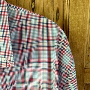 Features: Very nice basic long sleeve button front shirt. Collared. Plaid pattern all over. Pocket at the front of the chest.