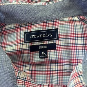 Men's Crown & Ivy XL Slim Fit Blue Red White Long Sleeve Button Front Shirt
