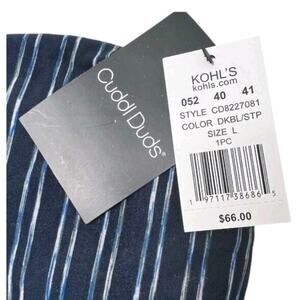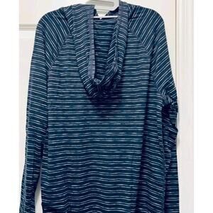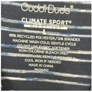 Mens Cuddl Duds Blue Striped Midweight Sport Performance Base Layer Hoodie Sz L NWT