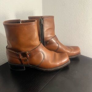 Stylish and durable brown leather biker boots perfect for any occasion. Crafted with quality materials for lasting comfort and style. Size 8.5.
