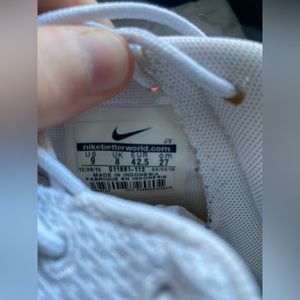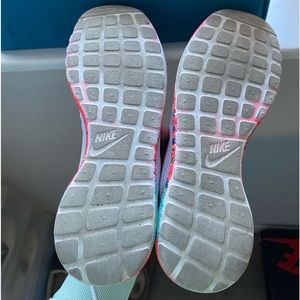 Worn several times. Has a couple of scuffs on the soles (can be seen in the pictures) and a crease in the back of one of the shoes (can be seen in the second picture; bottom shoe).