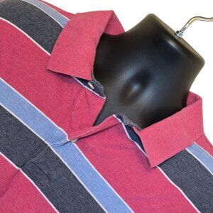 XXL men's long sleeve cotton polo from DANIEL CREMIEUX, Heathered red, charcoal gray and light blue stripes. Very good pre-owned condition. No rips, holes or stains.
