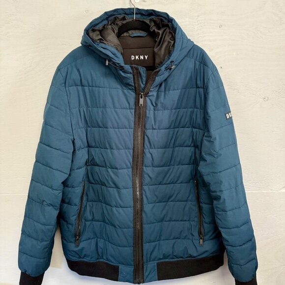 Men's DKNY Blue and Black Winter Puffer Jacket Size XXL