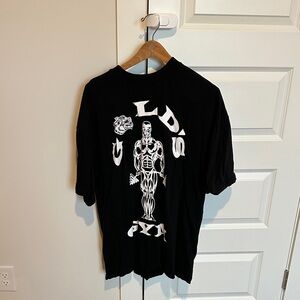 Stylish black graphic t-shirt featuring a bold design. Perfect for casual wear.