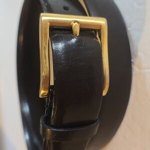 Mens Dark Brown Leather Belt w/ Gold tone Buckle Neutral Minimalist FLAW Sz.M/L