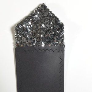 Men's Dark Silver & Black Sequin Pre-Folded Pocket Square Insert - Point Design