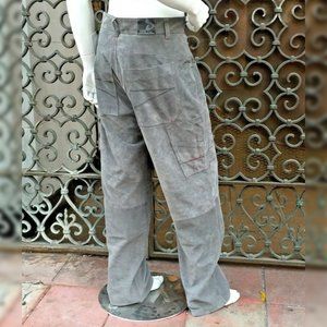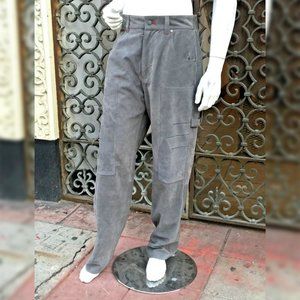 Men’s Davoucci Grey Tiny Corduroy Genuine Suede Leather Pants