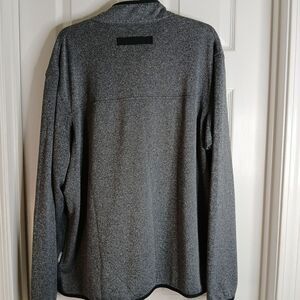Stylish gray quarter-zip pullover featuring a black chest pocket. Perfect for casual wear. Sports, camping, hiking, work, Fall, Winter.