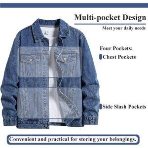 Men's Denim Jacket with Multiple Pockets Dark Blue