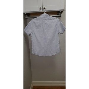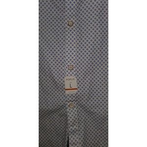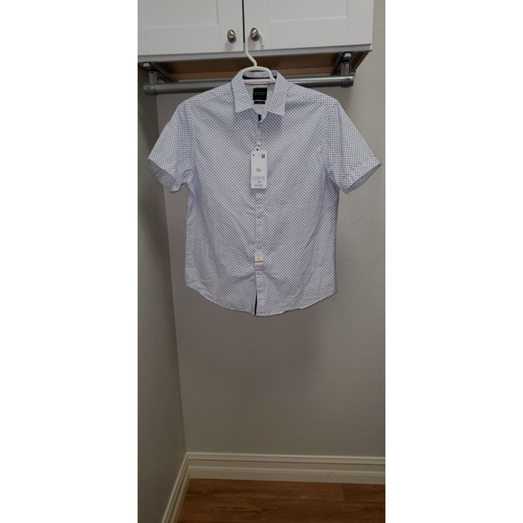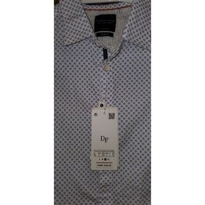 Men's Denim and Flower Short Sleeve Button Down Dress Shirt, Large Size, New with Tags, Slim Fit, White and Blue Color Flower Pattern, 100% Cotton