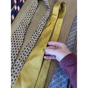 This is a lot of some designer men’s ties. What you see if what you get. There are some light imperfections noted. The yellow Lord & Taylor has some wrinkling noted from being kept tied. The Valentino has faint lines noted but you don’t really see it unless inspecting it up close. Brands are Lord & Taylor, Valentino Garavani, Brooks Brothers, Polo Ralph Lauren, AD 56 Milano. Please see pictures and ask any questions prior to buying. Thanks for looking.