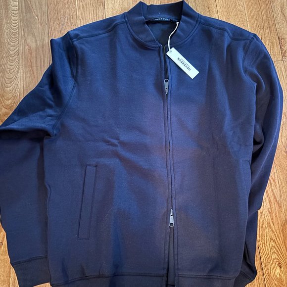 Devereux Golf Bomber Jacket. Black cotton blend material. 2 way working front zipper. 2 side pockets. Bomber style ribbed color with matching ribbed waistband and cuffs. Size XL. Unworn.Tag still on.
