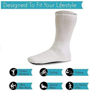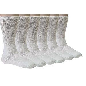 Mens Diabetic Socks Loose Fit Crew Length 6 Pair White Men's Size 13-15 Fits shoe size 9-14