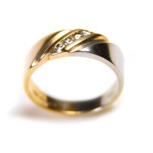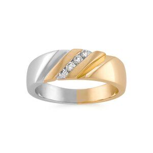 Men's Diagonal 14K Two-Tone Gold & Diamond Band