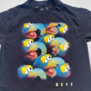 Men's Disney x Neff Black Muppets T-Shirt M Cartoon Jim Henson Gonzo Animal Art. 100% Cotton. Made in Mexico. Crew, light, and stretch material.