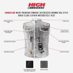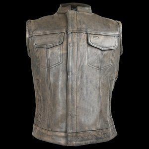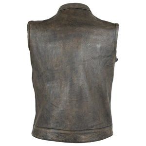 Men's Distressed Brown Leather Motorcycle Club Vest