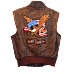 Men’s Distressed Brown Leather Vest XL Full Zip Lined Pockets Vintage w/ Patches
