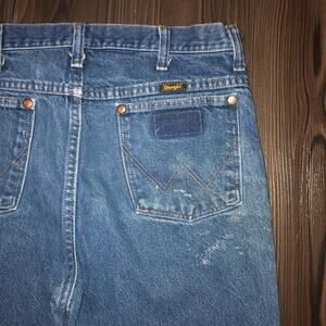 Men’s Distressed Dark Washed Wrangler Denim Jeans | 32x34