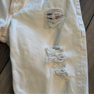 Stylish distressed off white denim shorts perfect for casual outings. Comfortable and trendy, these shorts are a must-have for your wardrobe.