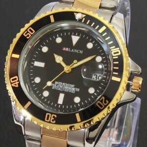 Men's Diver Style Watch Black Bezel Silver Gold Tone 40mm