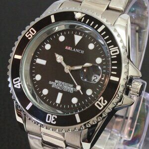 Men's Diver Style Watch Black Uni-directional Bezel Stainless Bracelet 40mm